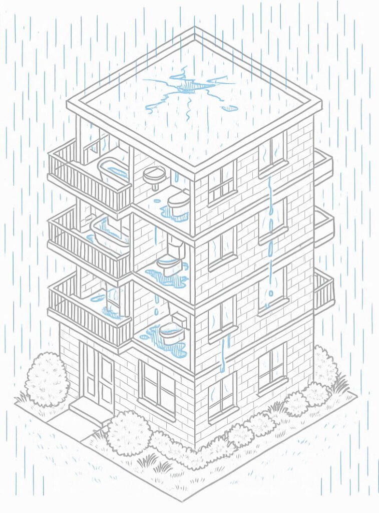 Goteiras persistentes, umidade em paredes ou tetos que aparecem após chuvas e temporais?